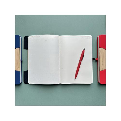 Обложка, выполненная из экокожи с покрытием Soft Touch, создает приятные тактильные ощущения при соприкосновении с ежедневником. Украшает обложку деревянный элемент и вырубка в форме полукруга. Ну, а вишенка на торте – мягкая линия сгиба в центре обложки, позволяющая использовать ежедневник в качестве подставки под телефон. А маленькая петля из резинки – отличное решение для фиксации шариковой ручки, она всегда будет под рукой. Есть еще одна удобная деталь ежедневника - ляссе в цвет обложки для быстрой навигации.