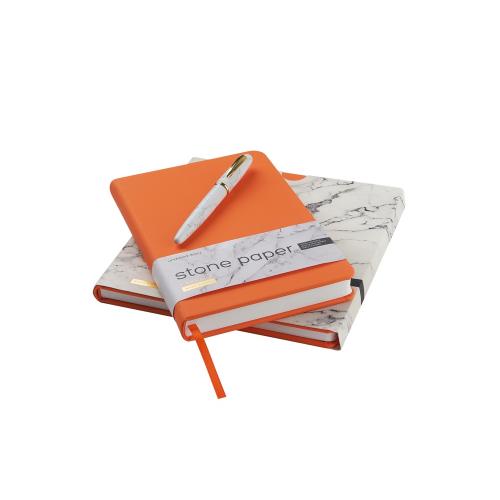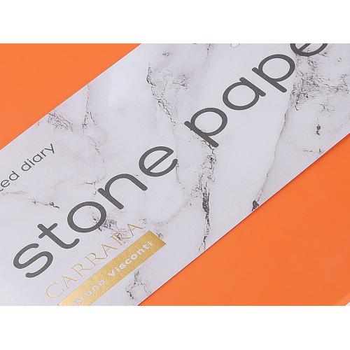 Уникальность недатированного ежедневника Carrara от Bruno Visconti — в его блоке. Он изготовлен из каменной бумаги плотностью 144 г/кв.м, отличающейся особой гладкостью и повышенной прочностью. Она не боится воды и пролитого кофе, достаточно просто протереть сухой салфеткой.