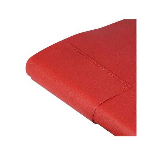 Лаконичная модель в ярком исполнении: гибкая обложка красного цвета с контрастной или в цвет обложки нашивкой. Выполнен из качественной и прочной искусственной кожи, крепление внутреннего блока - книжный переплет, закладка- ляссе. Углы обложки скруглены.