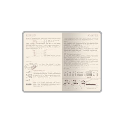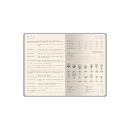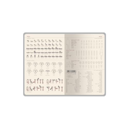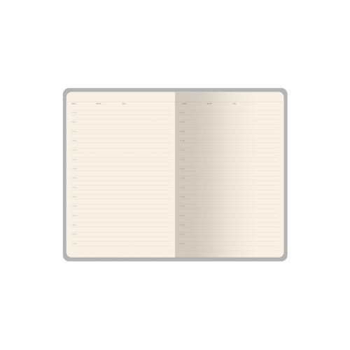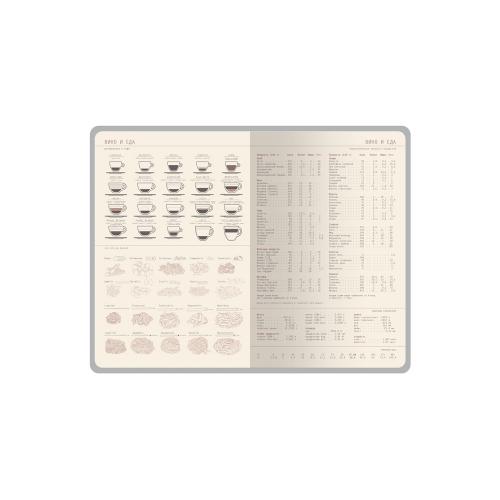 Ежедневник формата А5 имеет внутренний блок из 272 страниц. Блок изготовлен из бежевой бумаги плотностью 70 г/м2 и содержит: