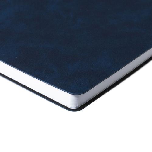 Ежедневник с гибкой обложкой, выполнен из материала Nubuck Touch, темно-синий XX, дополнен ляссе и петлей-резинкой для ручки черного цвета.