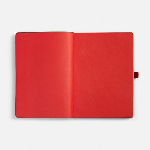 Ежедневник с гибкой обложкой, выполнен из материала Nice Touch Ultra, красный РР, дополнен цветными ляссе и петлей-резинкой для ручки.