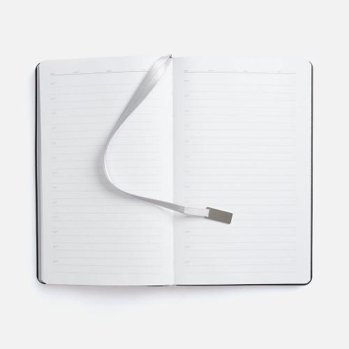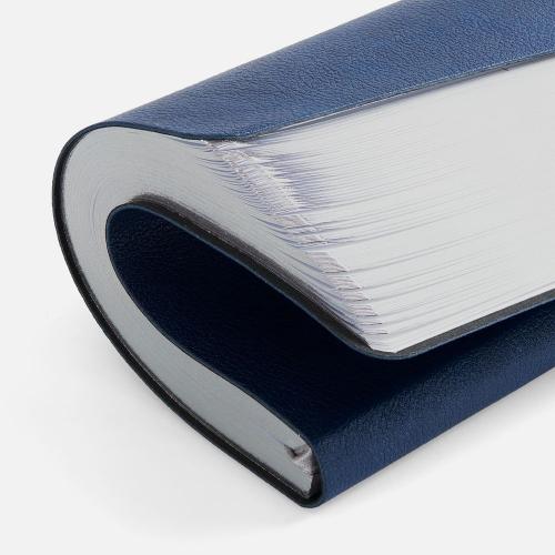 Ежедневник с гибкой обложкой, выполнен из материала Petrus, синий НН, дополнен серым ляссе с металлическим шильдиком.
