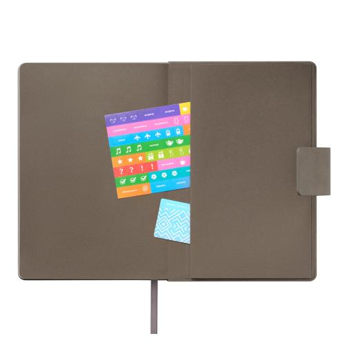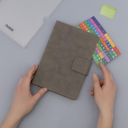Недатированный ежедневник Ritz сочетает в себе элегантность и функциональность. Твердая обложка из высококачественной искусственной кожи с бархатистой текстурой, напоминающей нубук, приятна на ощупь.