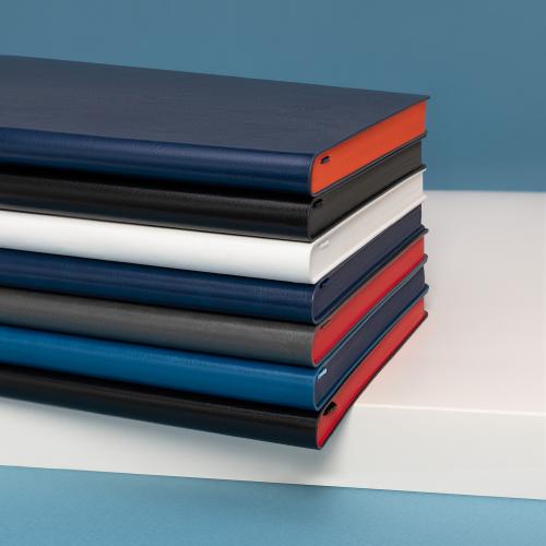 Внутри — страницы теплого светло-кремового оттенка из гладкого шелковистого офсета со скругленными уголками, которые обеспечивают комфортное письмо. Элегантное атласное ляссе с легким глянцем служит изысканным акцентом.