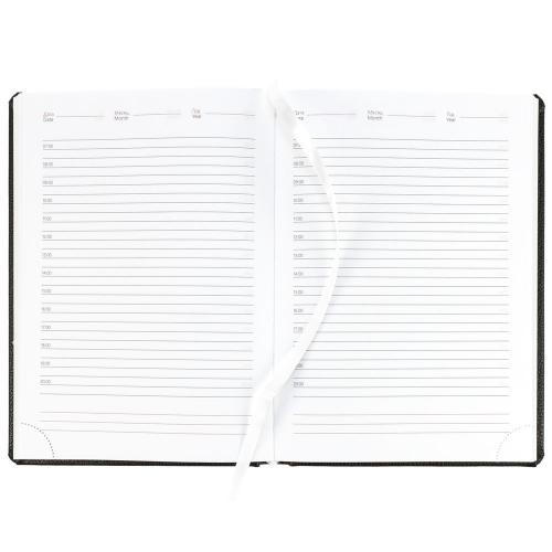 Ежедневник в твердой обложке c поролоном, выполнен из материала La Fite, черный АА, дополнен ляссе белого цвета.