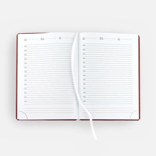 Ежедневник в твердой обложке c поролоном, выполнен из материала La Fite, красный РР, дополнен ляссе белого цвета.