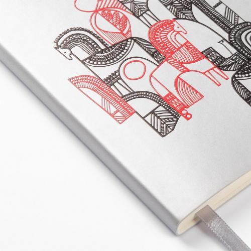 Матовая, слегка припудренная поверхность и скругленные углы добавляют изделию изящества. Кремовые страницы из гладкого шелковистого офсета, также со скругленными уголками, дарят удовольствие от письма. Гармоничное сочетание цветов дополнено атласным ляссе в тон обложки.
