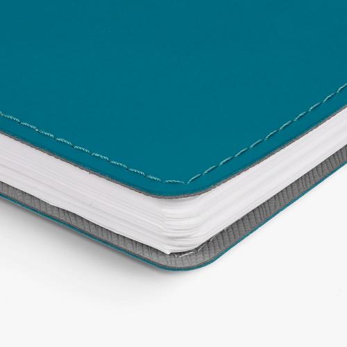 Ежедневник с гибкой обложкой, выполнен из материалов Soft Touch, цвет морской волны II и Nice touch, серый СС.