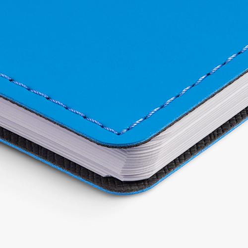 Ежедневник с гибкой обложкой, выполнен из материалов Soft Touch Ultra, голубой JJ и Nice touch, черный АА.