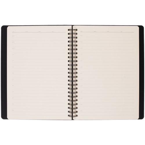 Ежедневник с блоком на пружине в твердой обложке, выполнен из материалов Nubuk Touch, черный AA и Soft Touch, черный AA.