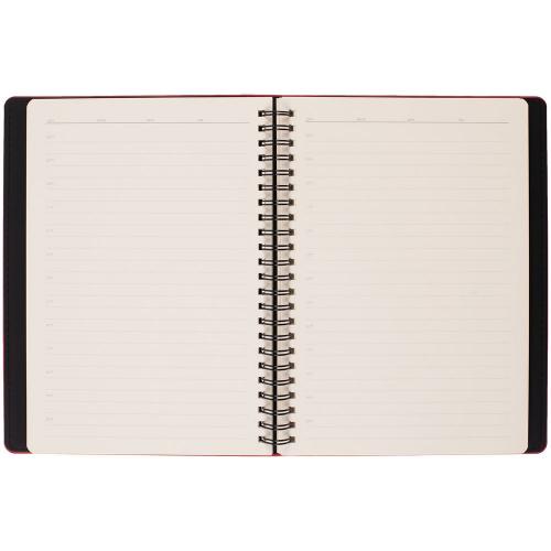 Ежедневник с блоком на пружине в твердой обложке, выполнен из материалов Nubuk Touch, красный PP и Soft Touch, черный AA.