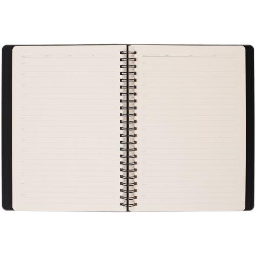 Ежедневник с блоком на пружине в твердой обложке, выполнен из материалов Nubuk Touch, серый СС и Soft Touch, черный AA.