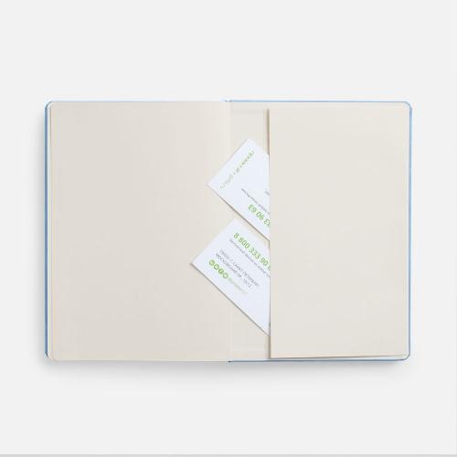 Ежедневник с твердой обложкой, выполнен из материала Nubuck Touch, голубой JJ, дополнен ляссе светло-голубого цвета.