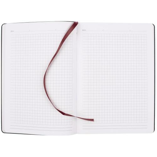 Ежедневник с гибкой обложкой, выполнен из материала Nubuck Touch, винный SS, дополнен ляссе в цвет обложки.