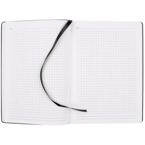 Ежедневник с гибкой обложкой, выполнен из материала Nubuck Touch, черный AA, дополнен ляссе в цвет обложки.