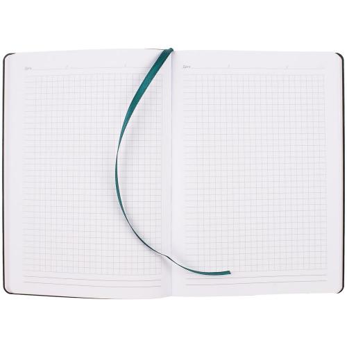 Ежедневник с гибкой обложкой, выполнен из материала Nubuck Touch, тёмно-зелёный VV, дополнен ляссе в цвет обложки.
