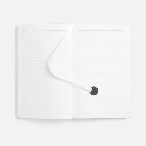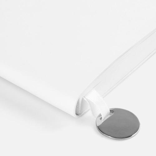 Ежедневник с гибкой обложкой, выполнен из материала Waltz, белый BB, дополнен ляссе в цвет обложки с металлическим шильдом.