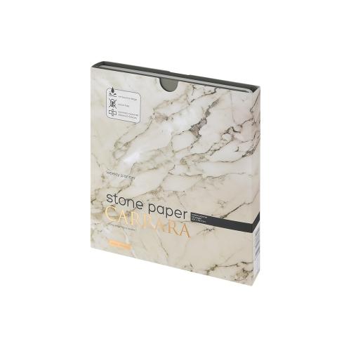 Блок произведен из каменной бумаги плотностью 144 г/кв.м, отличающейся особой гладкостью и повышенной прочностью. Она не боится воды и пролитого кофе, достаточно просто протереть сухой салфеткой.