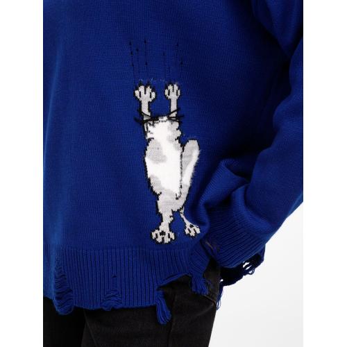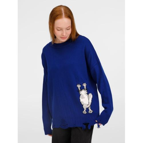 В дизайне мягкого джемпера с круглым вырезом Sharpick гранж-эстетика органично сочетается с милым акцентом — пушистым рисунком в виде озорного котика. Получается веселая вариация на тему того, откуда берется модная рваная одежда, а джемпер моментально создает настроение легкой несерьезности. Рваные края изделия добавляют современную нотку, а резинка на вороте, манжетах и по низу обеспечивает удобную посадку.
