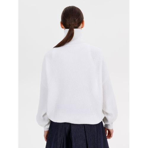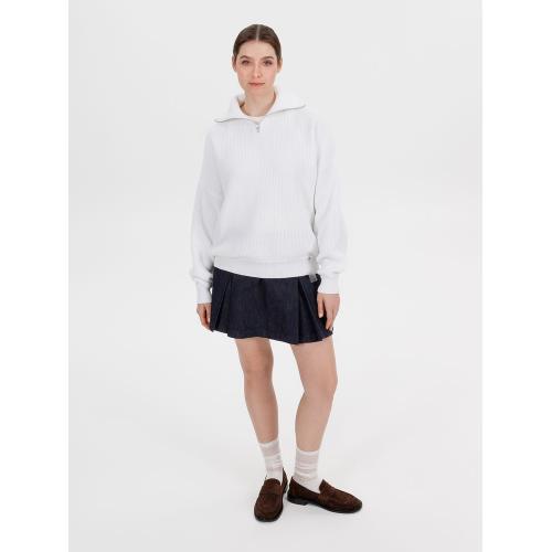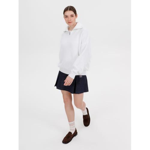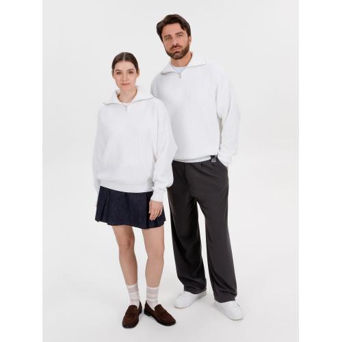 Siluetti Birne — плотный джемпер фактурной вязки со спущенной линией плеча позволит добавить в силуэт мягких линий и ненавязчивого объема, а также создать современный модный образ в лаконичном актуальном стиле, отдав при этом дань беспроигрышной классике. Дополнительным акцентом служит высокая горловина на молнии, а широкая резинка на рукавах и по нижнему краю изделия гарантирует максимальный комфорт.