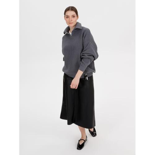 Siluetti Birne — плотный джемпер фактурной вязки со спущенной линией плеча позволит добавить в силуэт мягких линий и ненавязчивого объема, а также создать современный модный образ в лаконичном актуальном стиле, отдав при этом дань беспроигрышной классике. Дополнительным акцентом служит высокая горловина на молнии, а широкая резинка на рукавах и по нижнему краю изделия гарантирует максимальный комфорт.