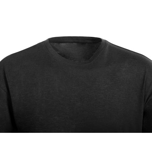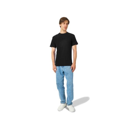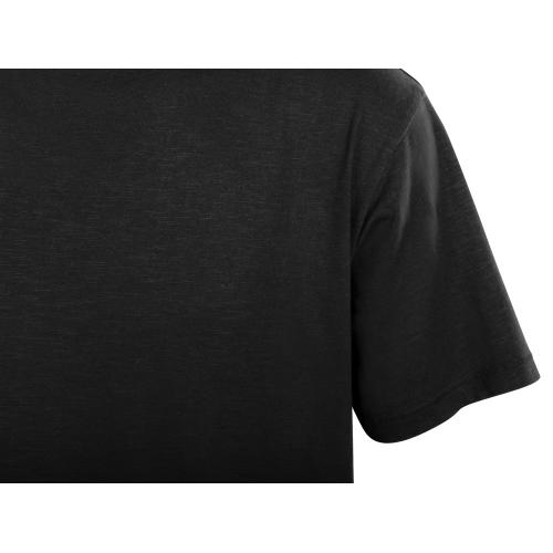 Полотно футболки имеет необычную структуру - с протяжками, но при этом гладкую поверхность, что обеспечивает идеальную поверхность для нанесения: прямая печать, трафаретная или термотрансфер прекрасно ложатся на такое полотно. Декоративная отстрочка по низу рукавов и изделия, а также отстрочка по горловине позволяют футболке дольше сохранять форму.