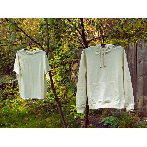 Современная футболка из натурального, неотбеленного хлопка. Без боковых швов - отлично подходит для нанесения. Горловина, рукава и низ выполнены с декоративной отделкой.