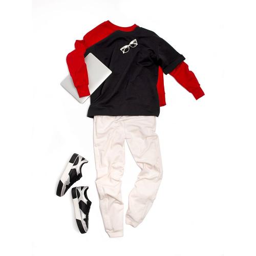 Футболка унисекс свободного кроя со спущенным плечом и смещенными плечевыми швами.