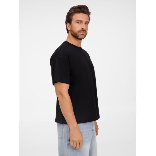 Футболка оверсайз унисекс с круглым вырезом и без боковых швов. Выполнена из смеси переработанного и обычного хлопка. Благодаря повышенной плотности отлично держит форму.