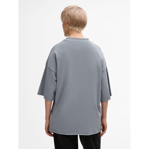 Футболка унисекс свободного кроя со спущенным плечом.