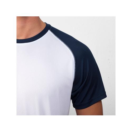 Спортивная футболка с контрастным рукавом реглан. Круглый вырез горловины с контрастной тесьмой. Технологическое дышащее полотно.