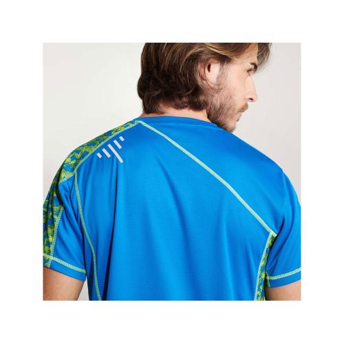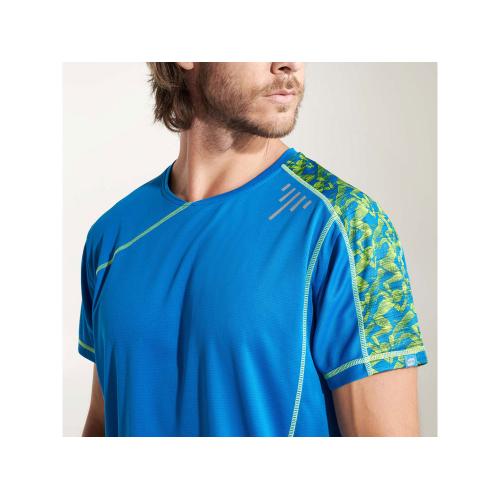 Спортивная футболка с коротким рукавом и принтованными вставками. Контрастные отстрочки плоским швом, светоотражающие элементы на полочке и спинке. Эко лейбл на рукаве. Технологичное полотно: *переработанный полиэстер с функцией контроля сухости *защита от UV излучения