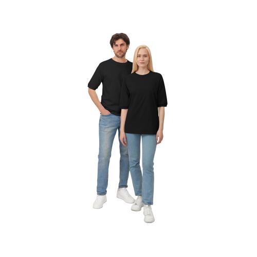 Футболка выполнена из хлопкового френч терри с петельками на изнаночной стороне. Горловина обработана рибом 2х2 и дополнительно усилена тесьмой-елочкой с внутренней стороны спинки и дополнена кокеткой по спинке для нанесения логотипа клиента. Рукав реглан продублирован рибом по низу. Разрезы в боковых швах. Гладкая поверхность полотна позволяет идеально нанести изображение. Футболка комфортного силуэта.