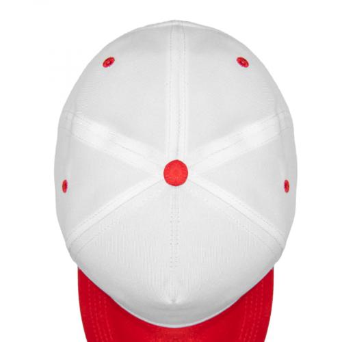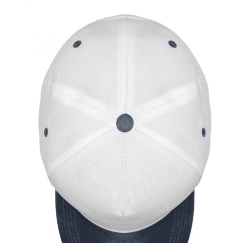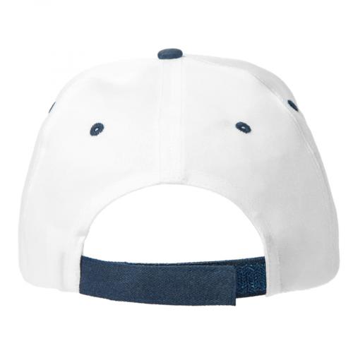 - 5 клиньев,- без лобового шва,- 4 вышитых темно-синих люверса для лучшей вентиляции, декоративный темно-синий хольнитен на куполе бейсболки,- застёжка-липучка,- изогнутый жесткий козырёк из контрастной тёмно-синей ткани с четырьмя рядами декоративных отстрочек.Цвет Пантона козырька : близкий к 296C58 см - минимальный размер, с помощью застёжки его можно увеличить до необходимого.