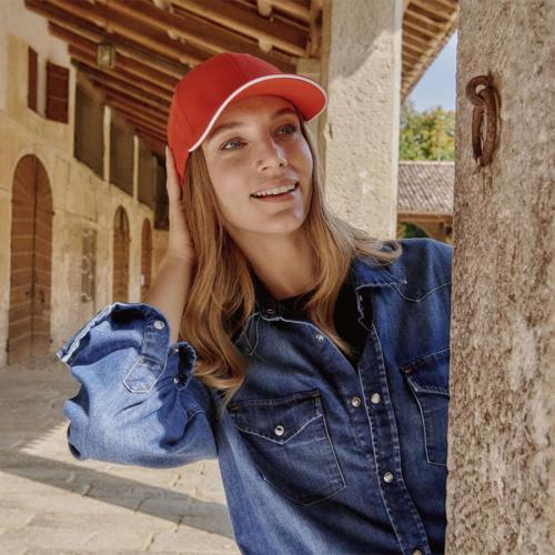 Бейсболка LIBERTY SANDWICH-S из смеси органического (80%) и переработанного (20%) хлопка - одно из лучших решений для промомероприятий и корпоративной формы: - 6 клиньев, - 6 вышитых люверсов для лучшей вентиляции, - изогнутый козырек «сэндвич» с декоративным кантом, - металлическая застежка.