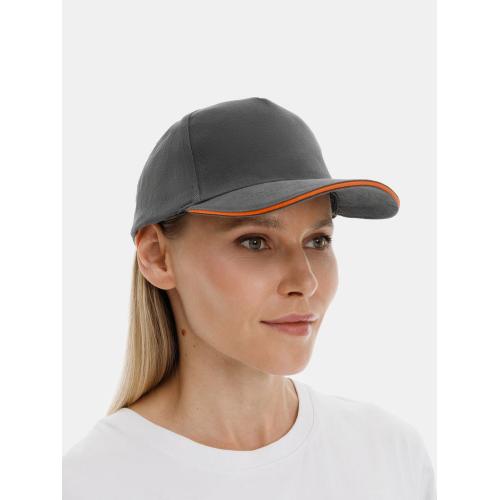 Бейсболка Long Beach, серая с оранжевым, артикул 6538.12