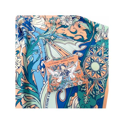 Дизайнерский платок Царевна Лебедь от Нины Ручкиной стал воплощением сказочного персонажа, прославленного великим и талантливым романтиком и поэтом — А. С. Пушкиным. Именно он впервые подарил нам образцы художественной русской эстетики, исходящей из самой глубины русской души.
