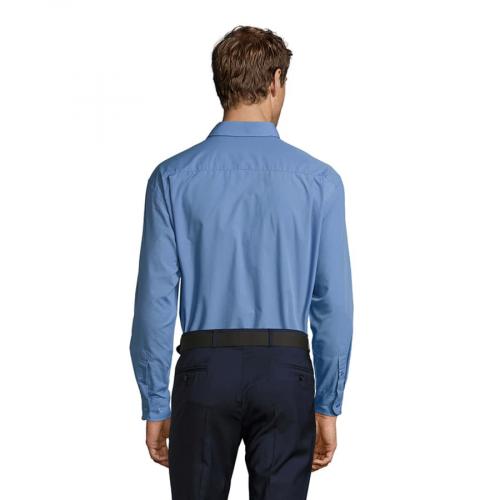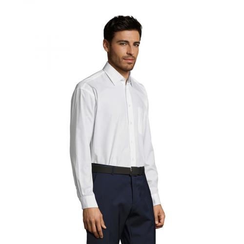 Мужская рубашка из смесового поплина с длинным рукавом.Смесовый поплин обеспечивает максимальный комфорт, лёгок в уход, не мнется.Стандартный крой (прямой).Длинный рукав.Жесткий воротник.Планка с 7 пуговицами в цвет изделия.Нагрудный карман слева.