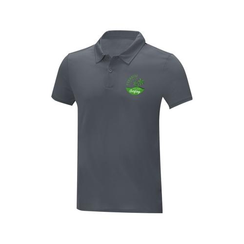 Мужская стильная футболка поло с короткими рукавами Deimos. Возможность нанесения на внутреннюю часть фирменной символики. Планка с двумя пуговицами. Для большего комфорта основной ярлык можно оторвать или отрезать. Обработка воротника обтачкой из основной ткани. Передний боковой шов со строчкой флатлок. Сетчатая ткань с покрытием cool fit 100% Полиэстер, 105 g/m2.