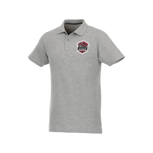 Мужское поло Helios с коротким рукавом. Отрезной-отрывной ярлык для комфорта. Воротник гладкой вязкой в рубчик. Планка с двумя пуговицами. Двойная строчка на воротнике и внизу изделия. Пуговицы в цвет изделия. Полоска на горловине в контрастном цвете.. Трикотаж Piqué, 90% хлопок, 10% вискоза. 180 г/м².