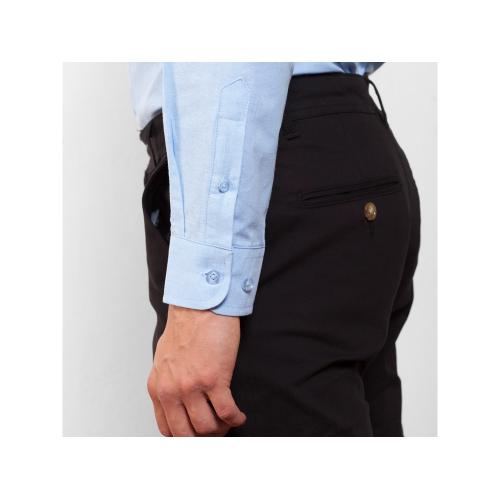 Мужская рубашка с длинным рукавом, накладной карман слева. Планка на пуговицах. Отложной воротник на стойке. Манжета регулируется по ширине с помощью 2-х пуговиц. Кокетка на спинке.