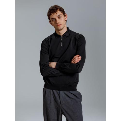Рубашка поло мужская с длинным рукавом Terrazzo, черная, артикул 19098.30