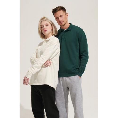 Рубашка поло из футера с длинным рукавом и спущенным плечом.
