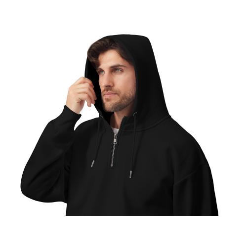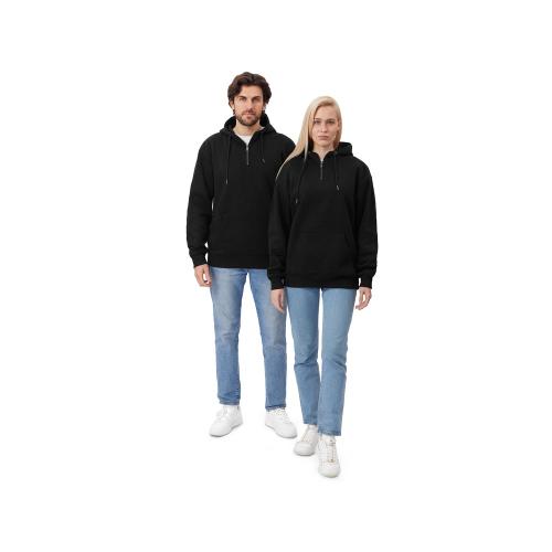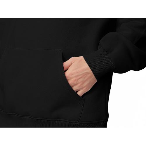Худи с капюшоном ворот на молнии. Шнур в капюшоне с металлическими наконечниками. Отделка горловины спинки внутри тесьмой, Риб 2х2 по низу изделия и манжетам. Удобный карман кенгуру.