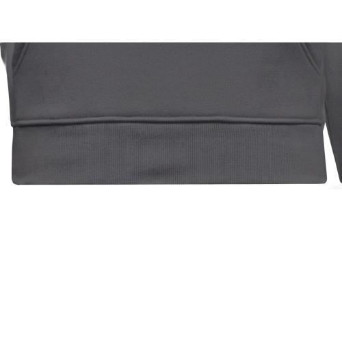 Худи с капюшоном ворот на молнии. Шнур в капюшоне с металлическими наконечниками. Отделка горловины спинки внутри тесьмой, Риб 2х2 по низу изделия и манжетам. Удобный карман кенгуру.