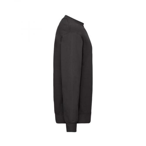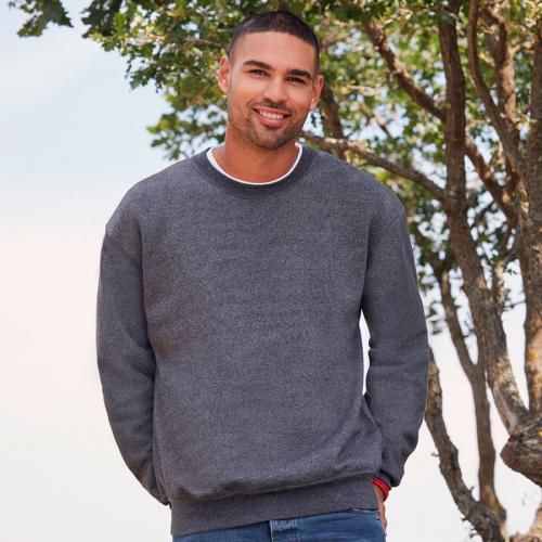 Мужской свитшот с начёсом изнутри. Вырез горловины спинки и плечевые срезы обработаны тесьмой. Низ изделия и манжеты окантованы плотным хлопковым рибом с добавлением лайкры. Двойная укрепляющая строчка по горловине, шву притачивания рукава и низу изделия.