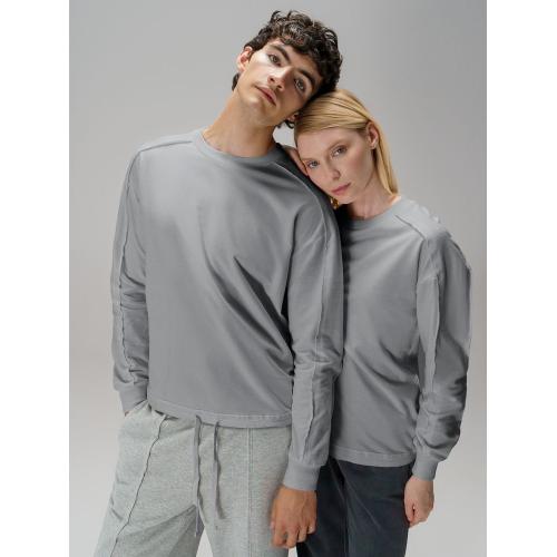 Свитшот унисекс оригинального пошива вдохнет новую жизнь в повседневный гардероб и добавит стильную нотку легкой небрежности в образ. Особая конструкция, где часть деталей — плечи и рукава — вывернута наизнанку, создает необычный притягательный эффект.
