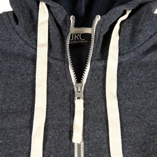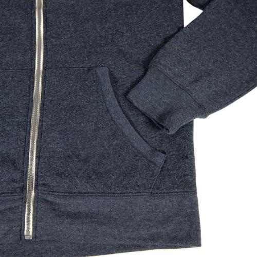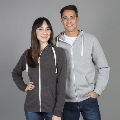 Толстовка с эффектом "меланж". Облегченная пластиковая молния с контрастной тканевой лентой. Капюшон с небольшой стойкой и плоским вытяжным шнуром. Манжеты и низ изделия обработаны рибом 1*1.