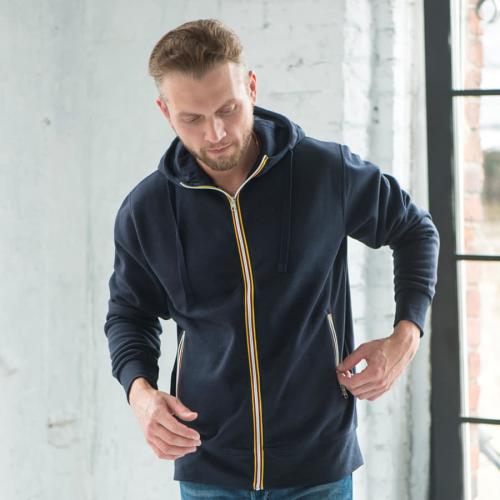 Комфортная толстовка худи на молнии LAS VEGAS MAN из футера с начёсом, плотностью 280 г м² и смесовым составом: 80% хлопка и 20% полиэстера. С таким составом изделия не деформируются и служат долго. Капюшон с подкладом и удобным высоким воротником-стойкой. Шов горловины усилен мягкой лентой Низ толстовки и рукава из эластичной рибаны. Основная молния и молнии в боковых карманах - контрастные.   Материал: футер с начёсом, 80% хлопка и 20% полиэстера, 280 г м².